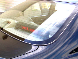 c ) Coloque 2 piezas de la (franja de tela recibidora) del VELCRO directamente sobre el vidrio a la misma separacion de las patitas del rotulo, en el sitio done desea colocarlo en su vidrio. . No importa si el pedazo que recibe (Velcro de Tela recibidora) es mas grande que el ancho de la patita con el Velcro Aspero. Esto dara mas area de soporte y menos probabilidad de que se despegue por el movimiento del vehiculo. | |